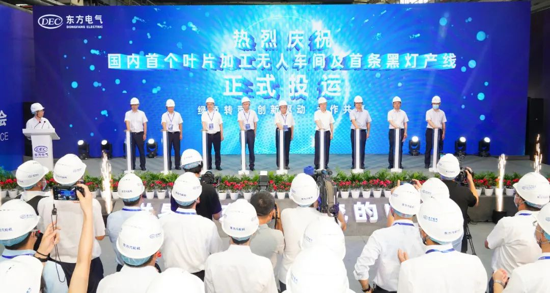 8月25日上午,國內首個葉片加工無人車間及首條黑燈產線投運儀式在東方汽輪機舉行。隨著一鍵啟動,AGV小車、機器人、數控加工中心等一系列智能設備,在數據驅動下智慧運行,標志著國內首個葉片加工無人車間及首條黑燈產線正式投運,這里也是2022世界清潔能源裝備大會展示的示范應用場景之一。