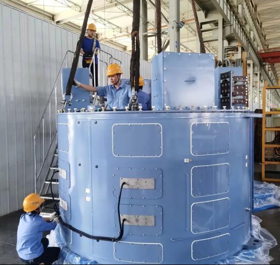 為了讓各工序“同頻共振”,就必須事先做好產線節拍的測算工作。董崢嶸帶著車間團隊從優化布局入手,他們把轉子裝配調到離動平衡機最近的位置,來回轉運時間節省1小時;定子浸漆改用“三臺同浸”模式,生產效率提升33%的同時還降低了成本;轉子法蘭絕緣套筒換成分瓣式,每臺裝配時間縮短3小時。這些看似細微的調整,像給生產線打通了“任督二脈”。