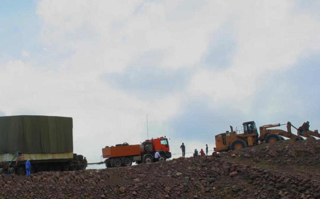 一切就緒,烏云密布的天空,宛如拉下了一塊巨大的黑色幕布。車輛嘶吼著前進(jìn),大馬力裝載機(jī)在車輛尾部“發(fā)狠”地往前推,轟鳴聲、摩擦聲、應(yīng)答聲……在異國(guó)他鄉(xiāng)上演著一場(chǎng)盛大的“交響音樂會(huì)”。