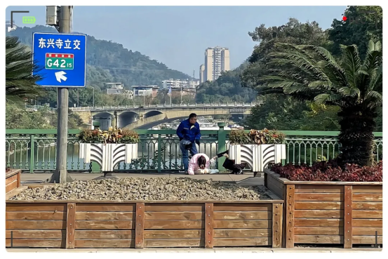 當途經簸米灣大橋時,他注意到,一名女孩正坐在大橋中央的護欄上,面向釜溪河,身體搖搖欲墜,似乎有輕生的念頭。