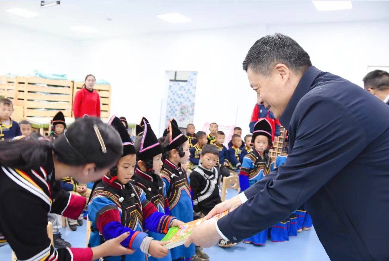 在東方電氣洛且博村幼兒園,俞培根深入了解幼教設施建設情況和當地適齡兒童學前教育情況,為幼兒園小朋友贈送書籍繪本。他指出,要發(fā)揮好幼兒園、幼教點作用,以真心真情和更大努力,呵護兒童茁壯成長,抓好“后繼有人”這個根本大計,讓鄉(xiāng)村教育賦能鄉(xiāng)村振興,把偉大事業(yè)推向前進。