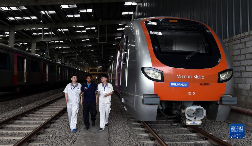 2018年6月27日,在印度孟買,中印雙方工作人員在孟買地鐵一號線車輛段工作。該地鐵線路車輛由中車南京浦鎮車輛有限公司制造。新華社記者張迺杰攝