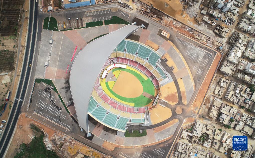這是2018年7月18日在塞內加爾首都達喀爾拍攝的中國援建的競技摔跤場(無人機照片)。新華社記者呂帥攝