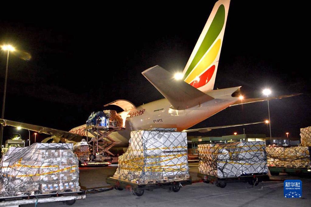 2020年4月14日,中國援助的抗疫物資抵達南非約翰內斯堡奧坦博國際機場。新華社發(中國駐南非大使館供圖)