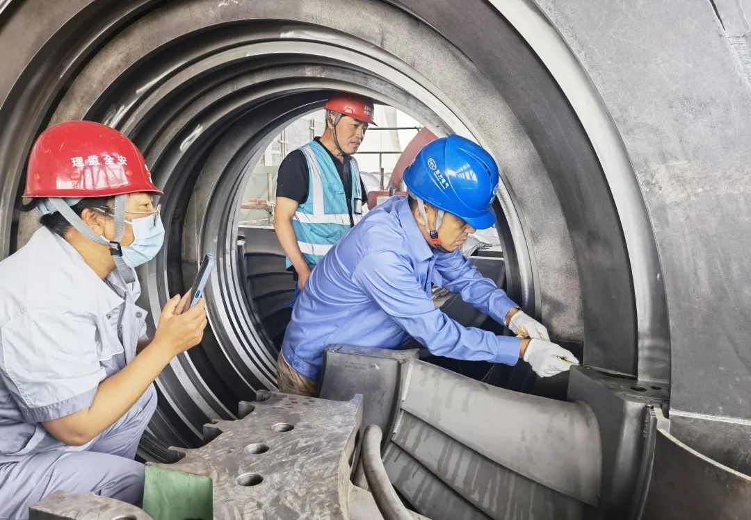 ◆東方汽輪機項目管理中心職工正在與合作單位檢查包鋼三期1號機
