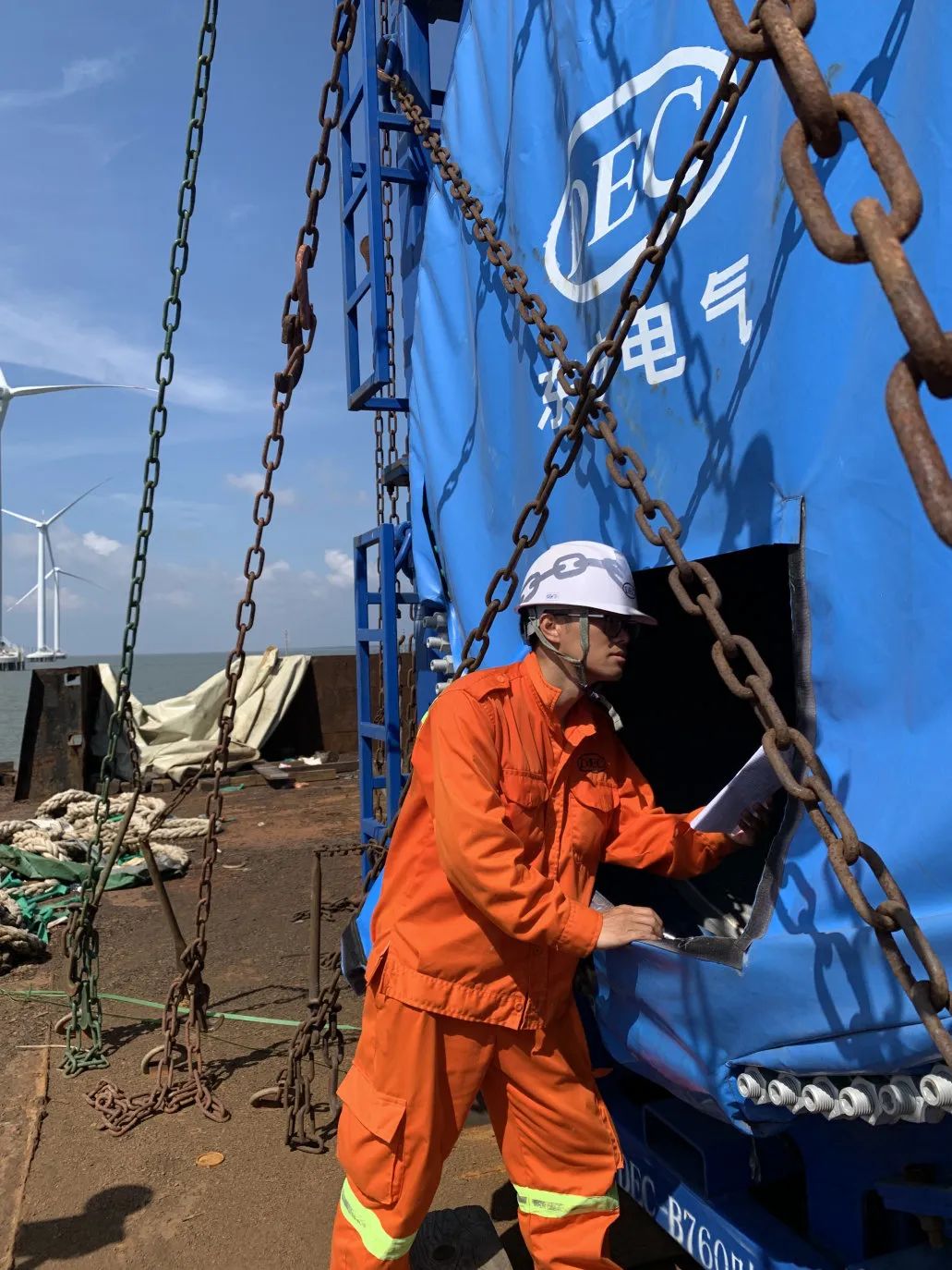 ◆東方國際職工正在核對越南長海3期海上風電項目相關數據,協調風機吊裝工作