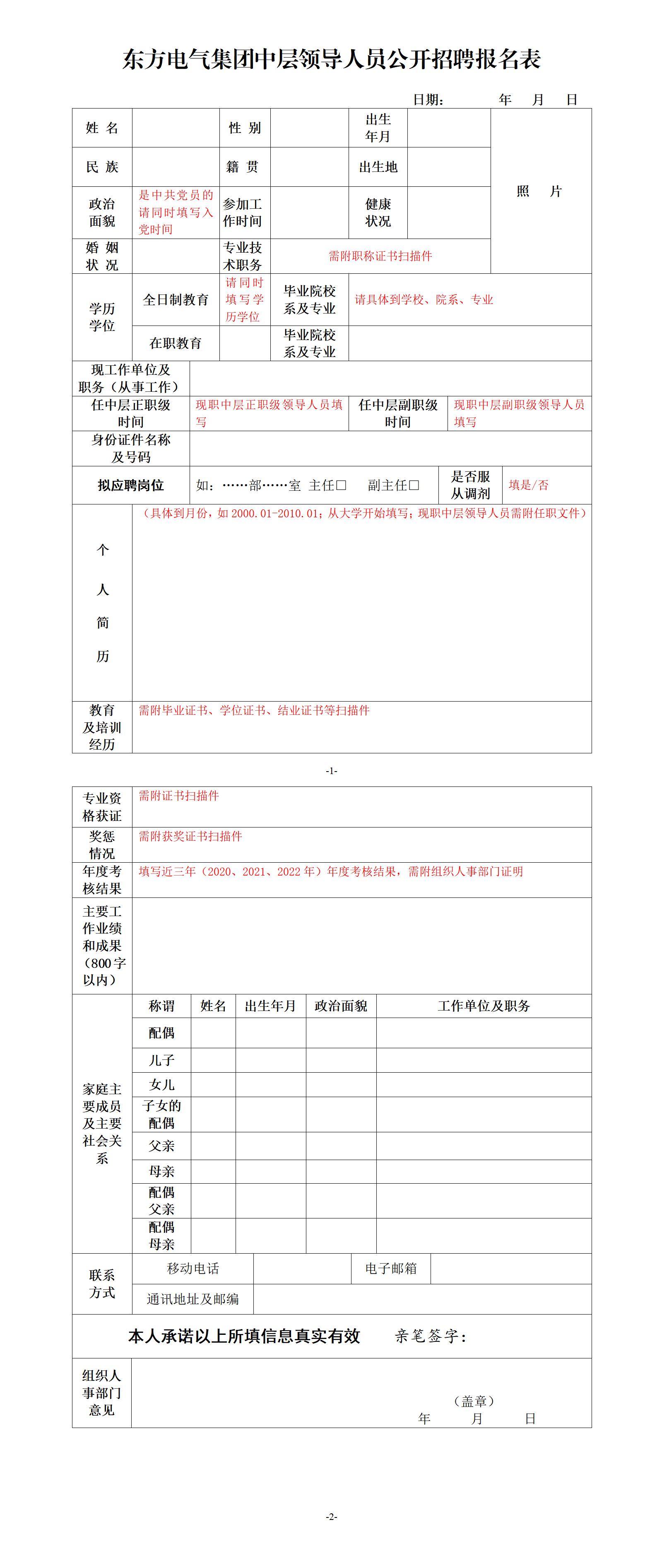 東方電氣集團中層領(lǐng)導(dǎo)人員公開招聘報名表