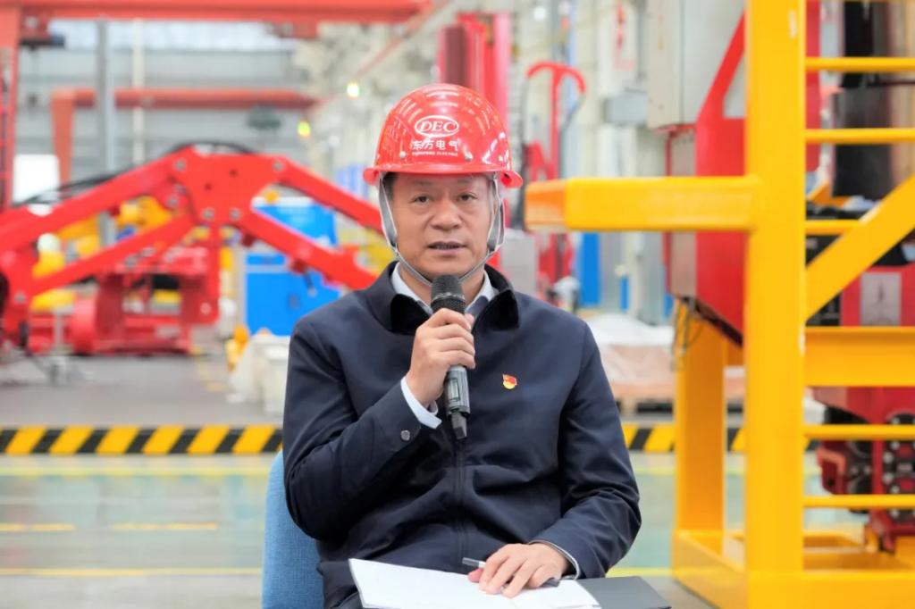 本網訊 4月9日,東方電氣集團黨組書記、董事長俞培根參加聯系基層黨支部——東方宏華研發部黨支部“提升新質生產力,激活發展新動能”主題黨日活動。研發部黨支部黨員代表、青年代表和黨外人士代表參加活動。活動采取沉浸式與互動式相結合的方式,在東方宏華零部件車間現場開展。
