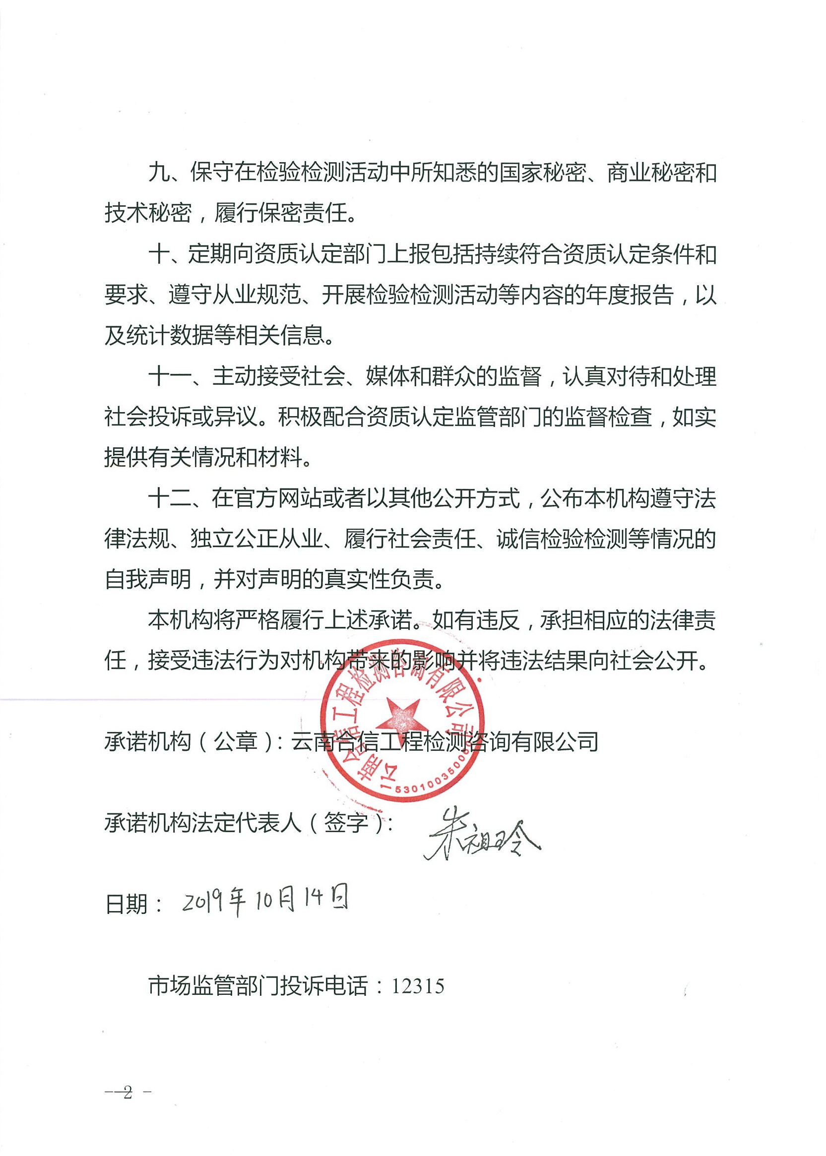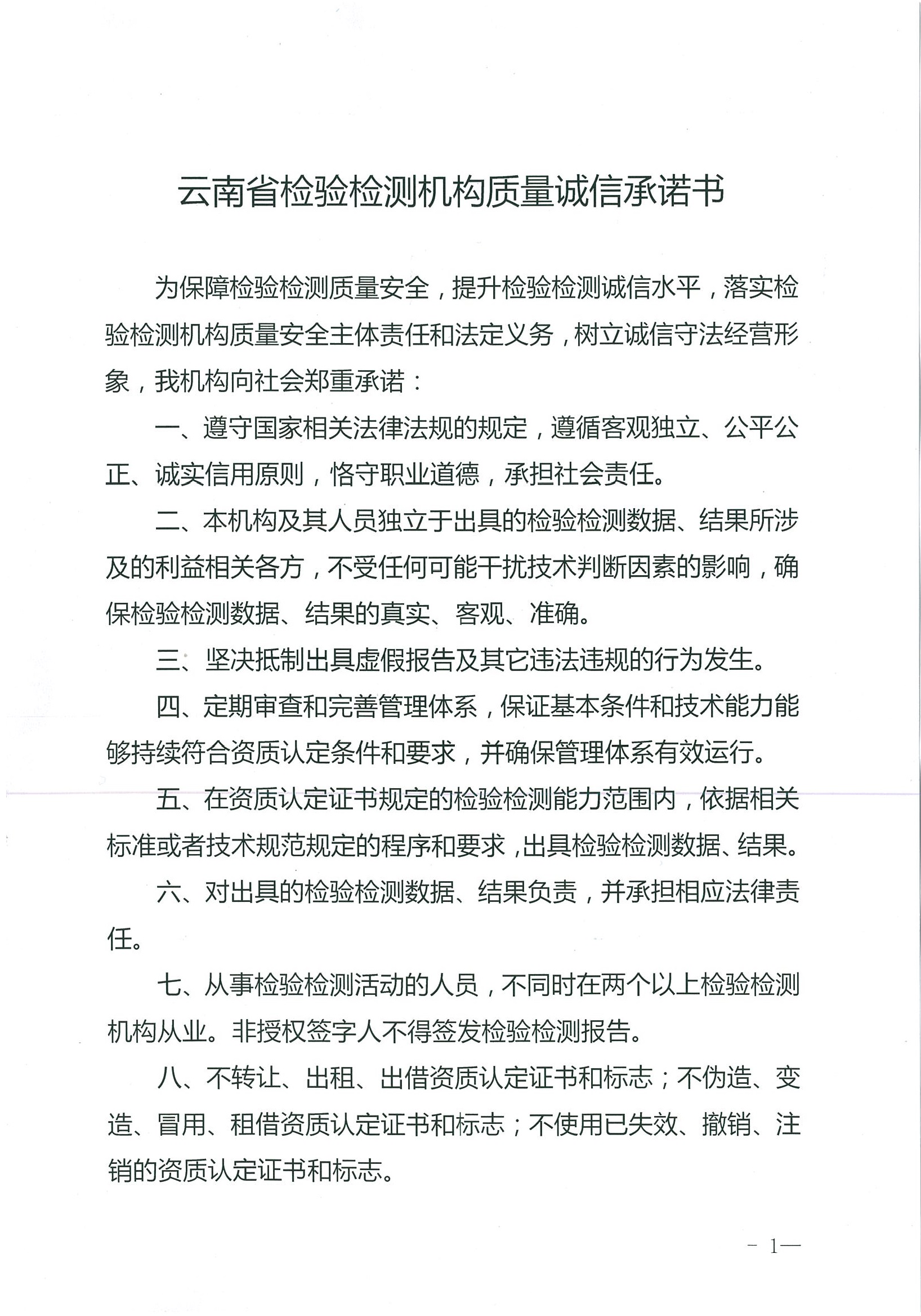 云南省檢驗檢測機構(gòu)質(zhì)量誠信承諾書