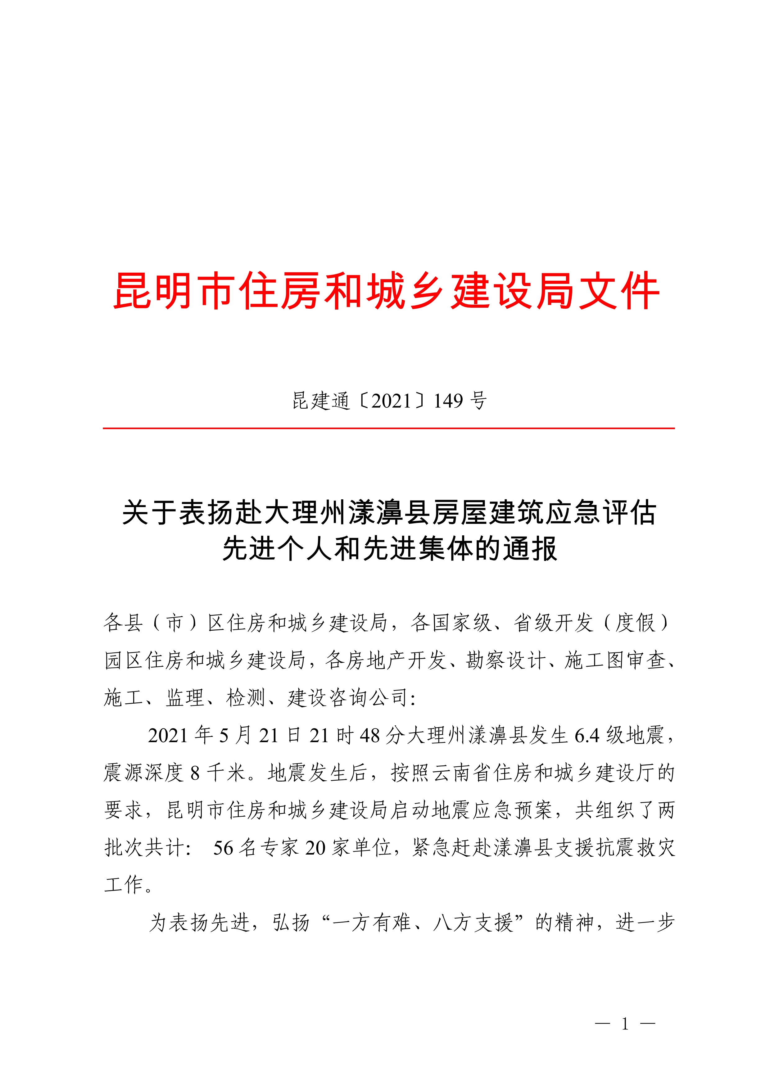 附件:《關(guān)于表揚(yáng)赴大理州漾濞縣房屋建筑應(yīng)急評(píng)估先進(jìn)個(gè)人和先進(jìn)集體的通報(bào)》(昆建通〔2021〕149號(hào))