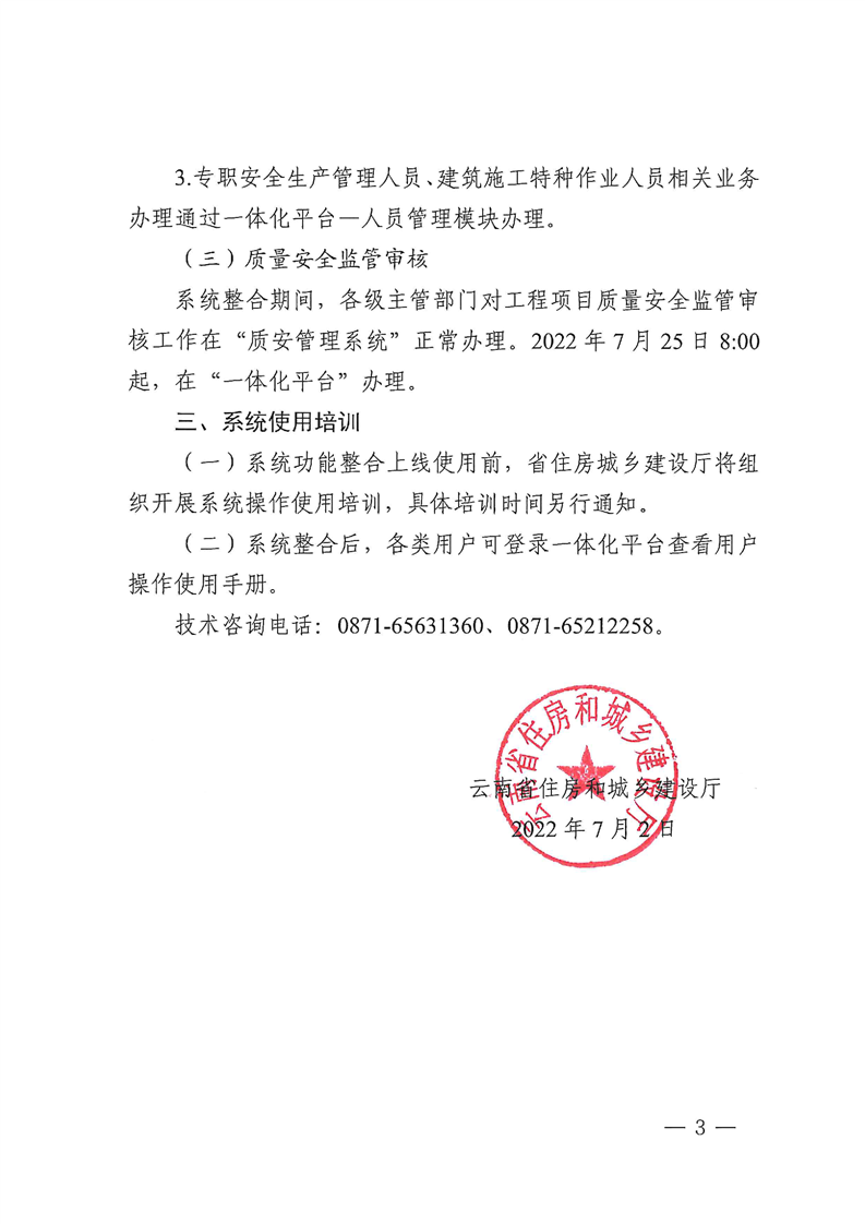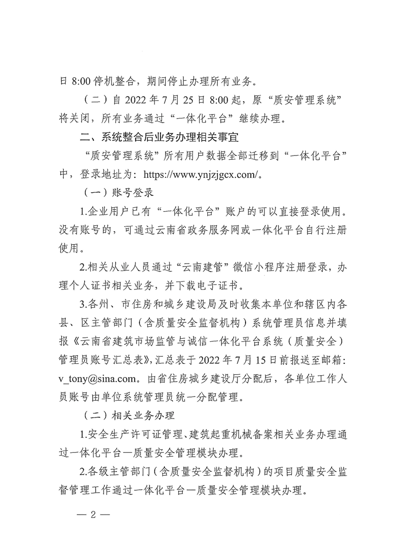 云南省住房和城鄉(xiāng)建設廳關(guān)于云南省建設工程質(zhì)量安全監(jiān)督管理信息系統(tǒng)功能整合停機的通知