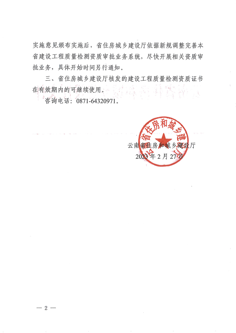 云南省住房和城鄉(xiāng)建設(shè)廳關(guān)于明確建設(shè)工程質(zhì)量檢測資質(zhì)有關(guān)事宜的通知