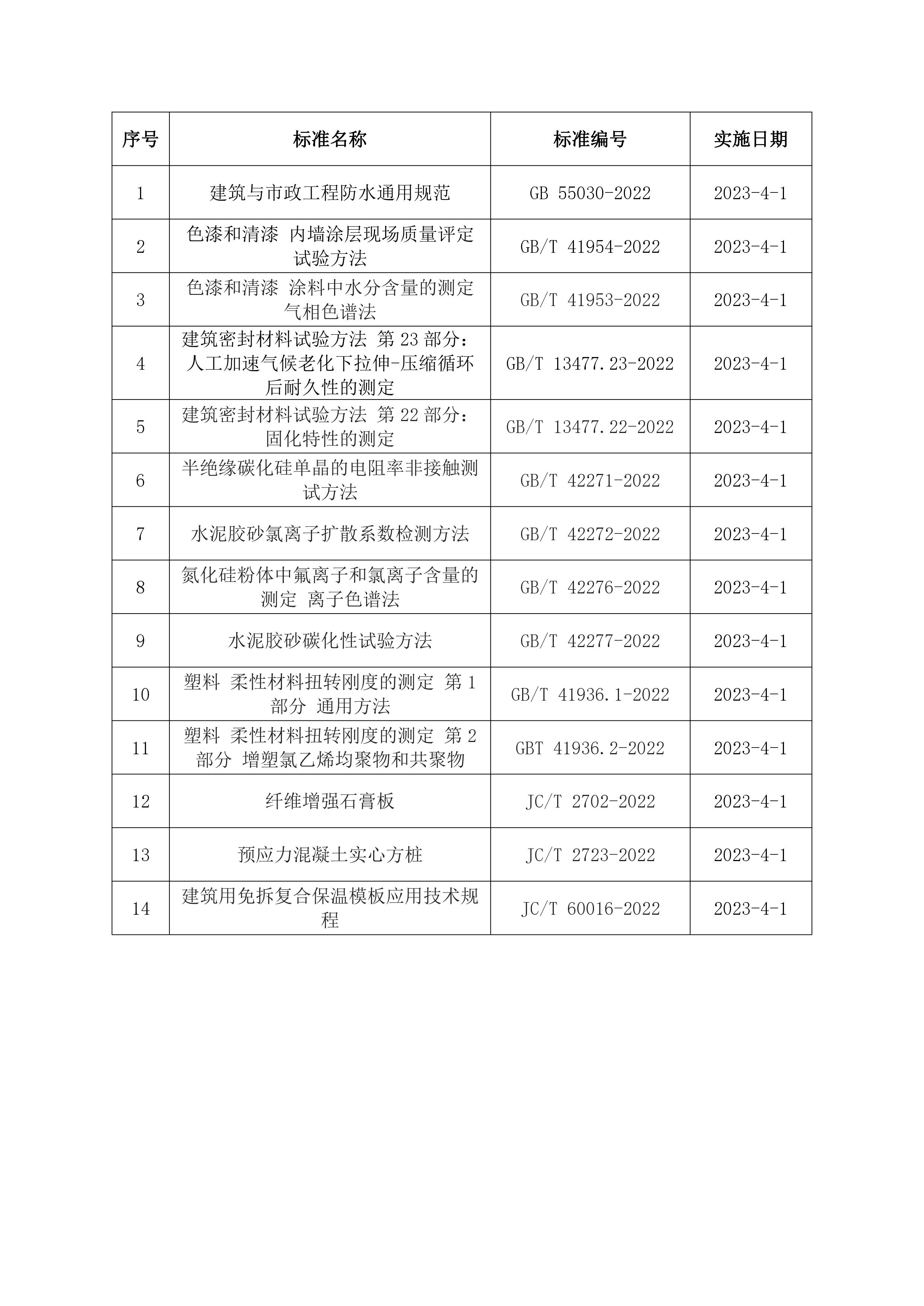 2023年4月開(kāi)始實(shí)施的工程建設(shè)標(biāo)準(zhǔn)
