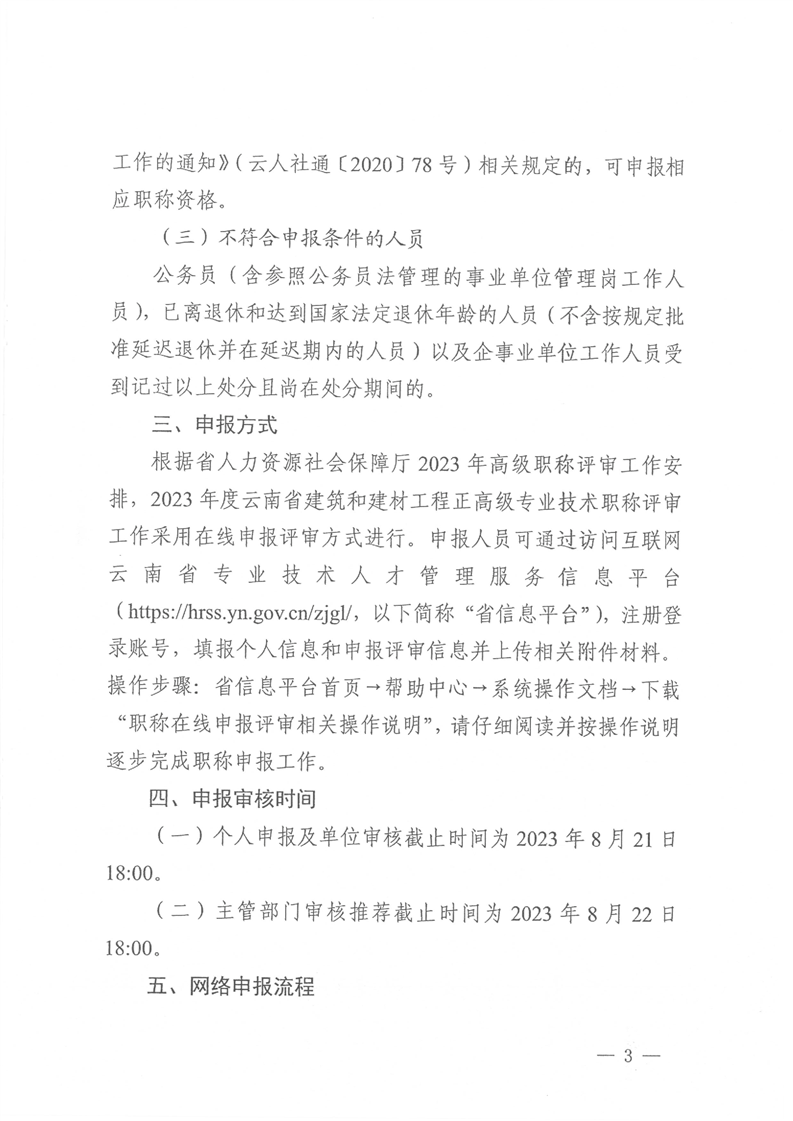 云南省住房和城鄉(xiāng)建設(shè)廳關(guān)于2023年度建筑工程和建材工程正高級專業(yè)技術(shù)職稱在線申報有關(guān)事項的通知
