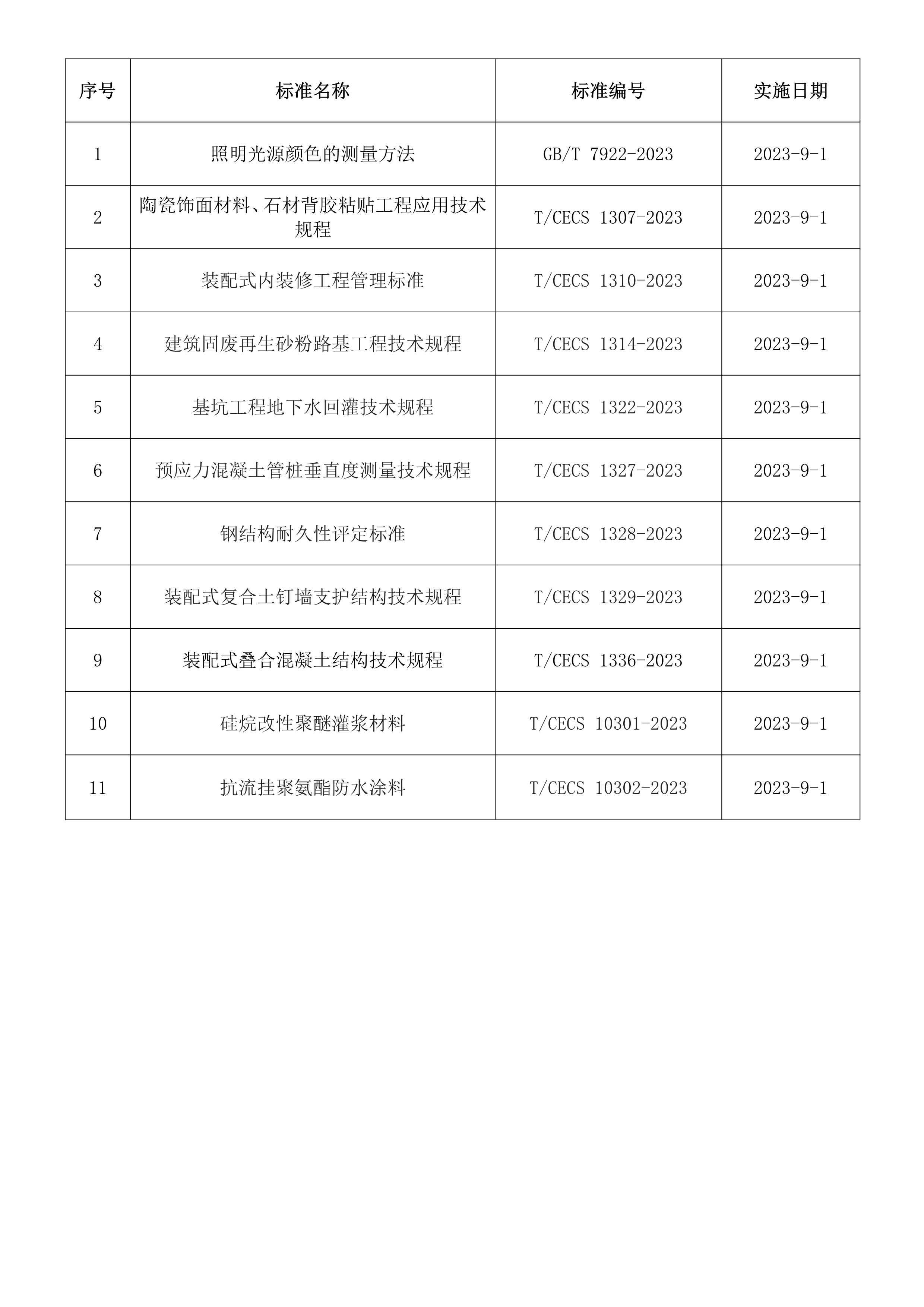 2023年9月開始實(shí)施的工程建設(shè)標(biāo)準(zhǔn)