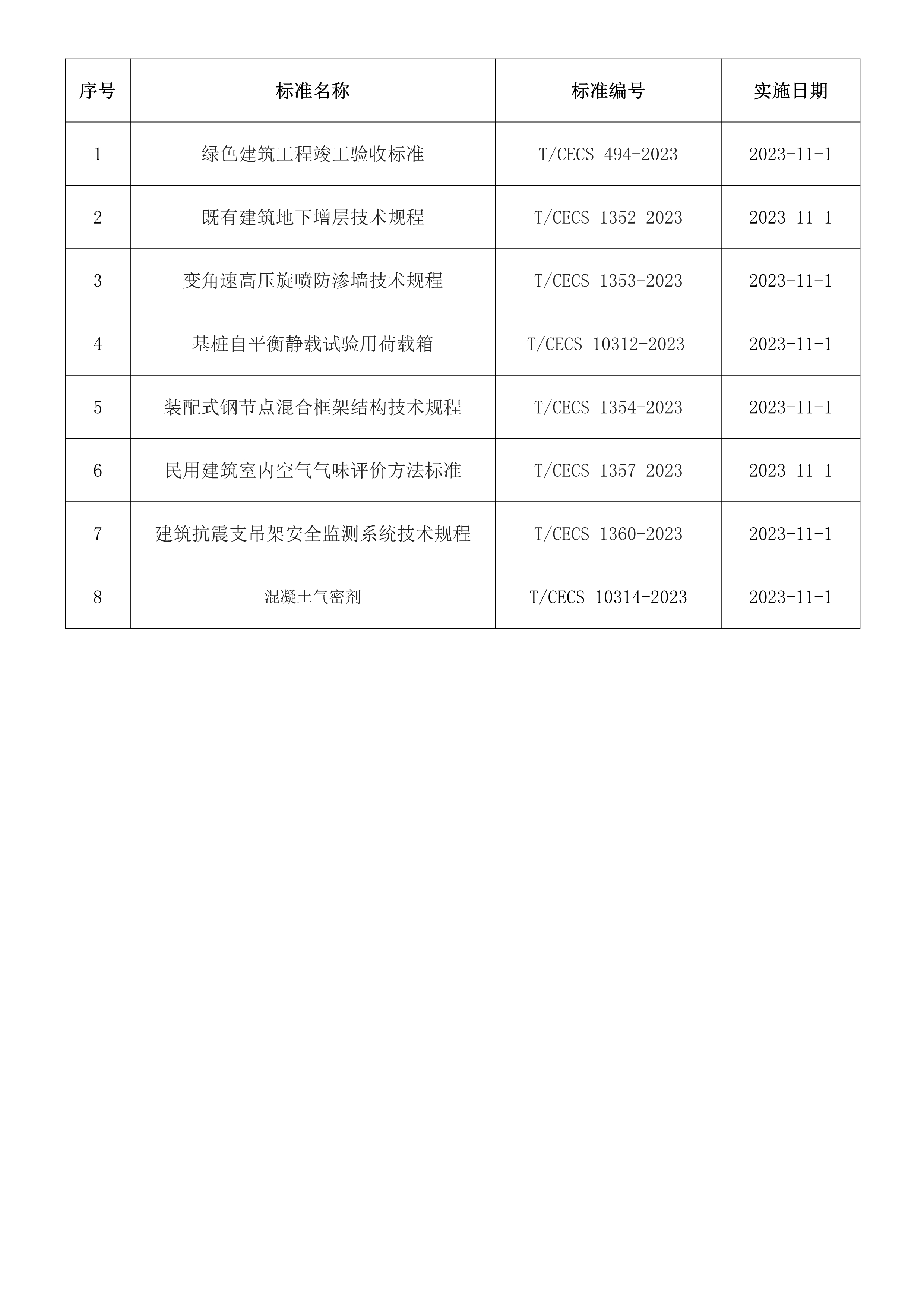2023年11月開始實施的工程建設(shè)標(biāo)準(zhǔn)